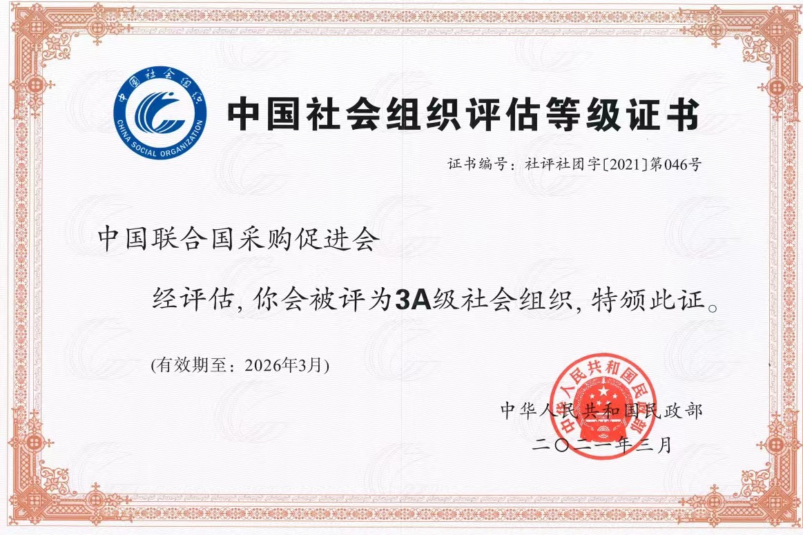 中国联合国采购促进会成立于2006年。是中央和国家机关工作委员会主管、民政部登记注册,商务部指导的具有独立法人资格的全国性社团组织,也是我国的唯一对接联合国采购中国事务的全国性社团组织。